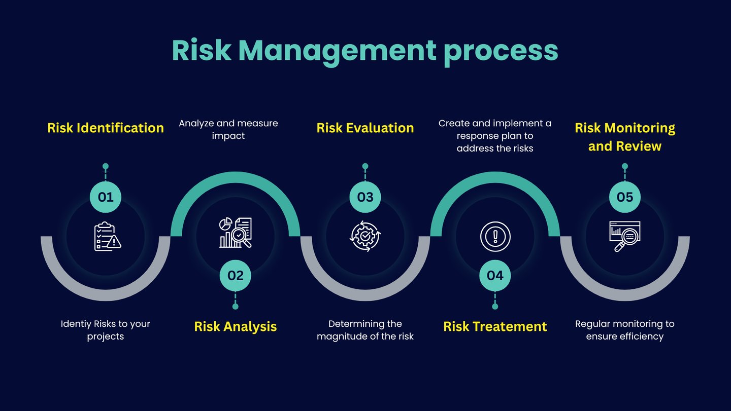 A risk management process is a systematic method for identifying, analyzing, prioritizing, and responding to potential threats that could impact an organization's or project's objectives. The goal is to proactively manage uncertainties by developing strategies to reduce their potential impact and increase the likelihood of success.